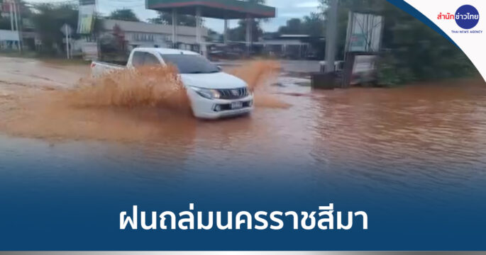 ฝนถล่มโคราช น้ำป่าไหลหลากท่วมถนน