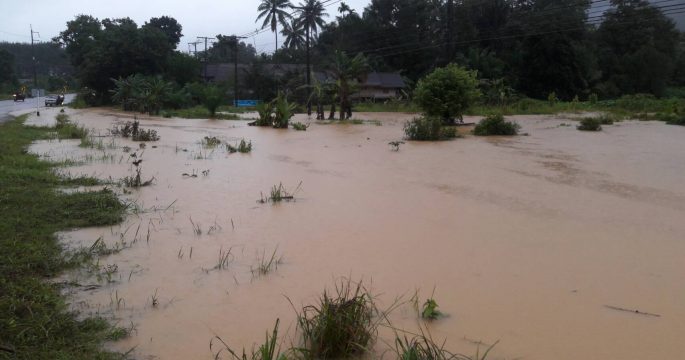 พังงาฝนเทกระหน่ำทั้งคืน น้ำป่าทะลักตะกั่วป่าท่วมกว่า 30 หลัง ถนนรถผ่านไม่ได้