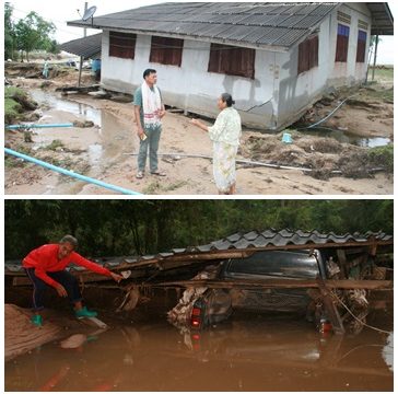 สุราษฎร์ฯ สำรวจความเสียหายหลังน้ำป่าหลากจากฝนตกหนัก บ้านเรือน อ.ท่าชนะ ทรุดตัว น้ำเซาะดิน-ถนน พัดเป็ดหายนับร้อยตัว