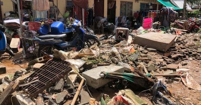 ลำปางฝนกระหน่ำหนัก น้ำป่าดอยขุนตาลทะลักกลางดึกท่วมชุมชนริมฝั่งอำเภอห้างฉัตร ชาวบ้านสะดุ้งตื่นเก็บของหนีน้ำอลหม่าน ล่าสุดน้ำลดแล้ว แต่ทิ้งคราบดินโคลนและซากกิ่งไม้ไว้เพียบ