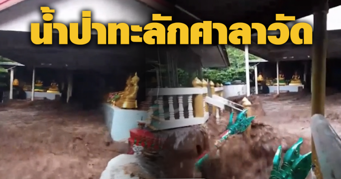 ฝนถล่มลพบุรี น้ำป่าจากเทือกเขาสูงในพื้นที่ไหลหลากทะลักวัดเขาจีนแล พัดสิ่งของปลิวกระจายไปตามกระแสน้ำ