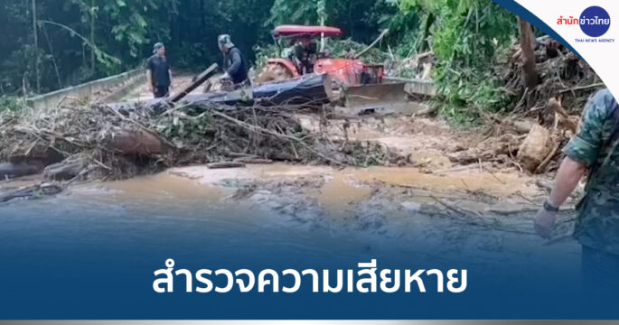 เจ้าหน้าที่เข้าสำรวจความเสียหาย หลังเกิดน้ำป่าไหลหลากพื้นที่บ้านแม่ตอละ ต.แม่สามแลบ อ.สบเมย จ.แม่ฮ่องสอน ชาวบ้านถูกกระแสน้ำพัดเสียชีวิต 1 คน