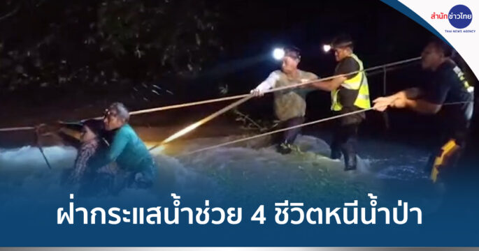 เปิดภาพนาทีเจ้าหน้าที่อาสาสมัครกู้ภัยร่วมกตัญญูปราจีนบุรี ฝ่ากระแสน้ำช่วย 4 ชีวิต หนีน้ำป่าเขาใหญ่ ปลอดภัย