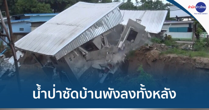น้ำป่าแม่ริมหลากซัดบ้านริมตลิ่งพังลงทั้งหลัง
