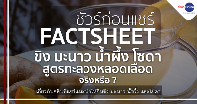 ชัวร์ก่อนแชร์ FACTSHEET : ขิง น้ำผึ้ง มะนาว โซดา ทะลวงหลอดเลือด จริงหรือ?