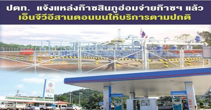 แหล่งสินภูฮ่อมซ่อมบำรุงเสร็จเร็วกว่าแผน 1 วัน จ่ายก๊าซฯ ได้ตามปกติแล้ว