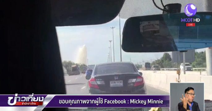 ท่อส่งน้ำดิบของบริษัทเอกชนชื่อดังชำรุดและแตก ทำให้มีน้ำพุ่งสูง 30 เมตร ริมถนนเลียบมอเตอร์เวย์เขตอำเภอบางปะกง จ.ฉะเชิงเทรา นอกจากนี้ยังมีรถเสียหายอีก 1 คัน