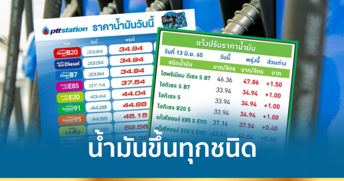 แวะปั๊มเลย! ผู้ค้าแจ้งพรุ่งนี้ (22 ต.ค.65) ปรับขึ้นราคาน้ำมันกลุ่มเบนซินและแก๊สโซฮอล์ 50 สตางค์/ลิตร คงดีเซล