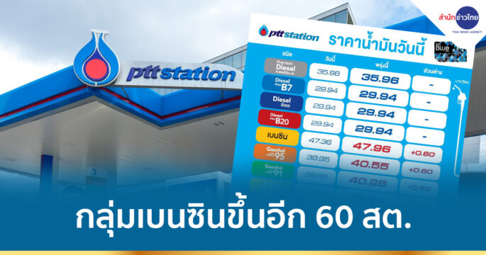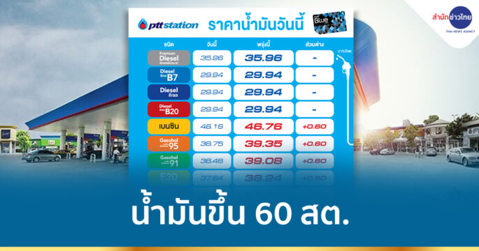 แวะปั๊มด่วน! ผู้ค้าแจ้งปรับขึ้นราคาขายปลีกน้ำมันกลุ่มเบนซินและแก๊สโซฮอล์ทุกชนิด 60 สตางค์/ลิตร ส่วนดีเซล คงเดิม มีผลพรุ่งนี้
