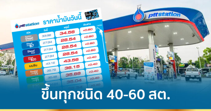 PTT Station – บางจากฯ ขึ้นราคาน้ำมัน 40-60 สต./ลิตร