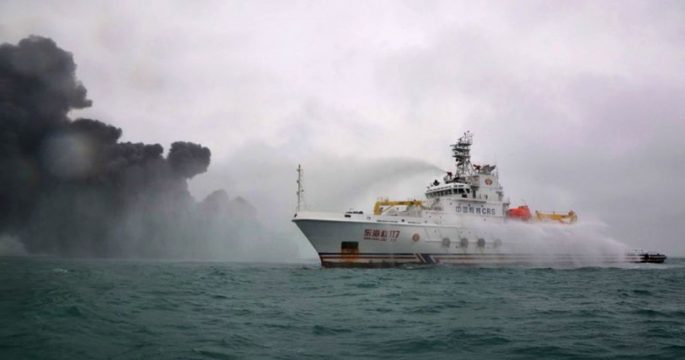 จีนเร่งหาทางจำกัดน้ำมันที่กำลังรั่วจากเรืออิหร่านชนกับเรือสินค้านอกชายฝั่งตะวันออกของจีนและยังไม่สามารถดับไฟที่ลุกไหม้ตั้งแต่วันเสาร์