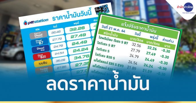 PTT Station บางจาก ปรับลดราคาขายปลีกน้ำมันกลุ่มเบนซินและแก๊สโซฮอล์ทุกชนิดลง 0.50 บาทต่อลิตร เว้น E85 ลดลง 0.30 บาทต่อลิตร ส่วน กลุ่มดีเซลทุกชนิด ลดลง 0.30 บาทต่อลิตร เว้น ดีเซลพรีเมี่ยม ลดลง 0.20 บาทต่อลิตร มีผล 22 พ.ค.64 เวลา 05.00 น. เป็นต้นไป