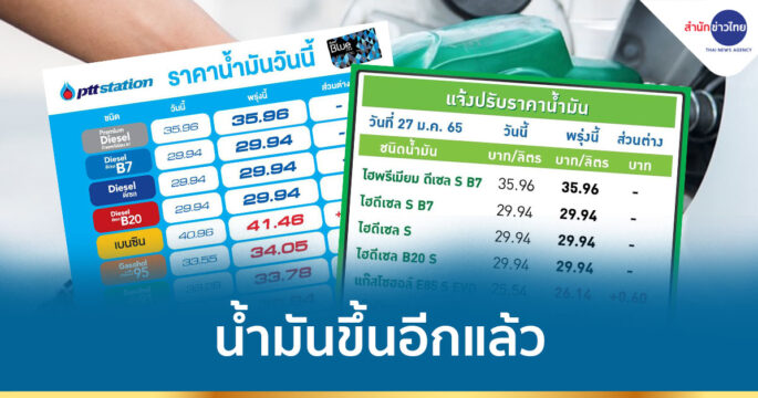 ขึ้นอีกแล้ว! ผู้ค้าแจ้งปรับขึ้นราคาขายปลีกน้ำมันทุกชนิด 40 สตางค์/ลิตร เว้น E85 ขยับขึ้น 20 สตางค์/ลิตร มีผลพรุ่งนี้