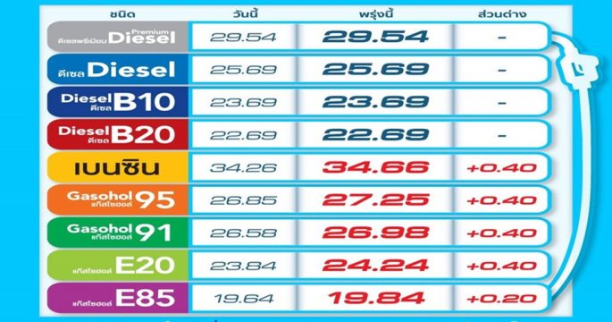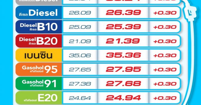 ปตท.-บางจากฯ ปรับราคาน้ำมันทุกชนิดขึ้น 30 สต. ยกเว้น E85 ขึ้น 15 สต./ลิตร มีผล 21 ก.ย.นี้