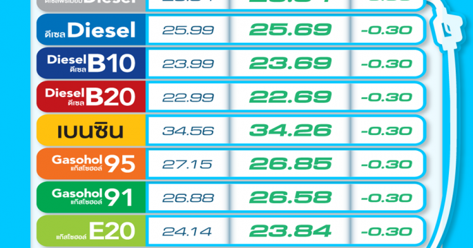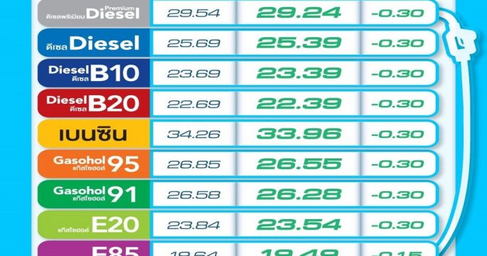 ปตท.-บางจากฯ ปรับลดราคาน้ำมันทุกชนิด 30 สต. ยกเว้น E85 ลดลง 15 สต./ลิตร มีผล 25 ต.ค.นี้