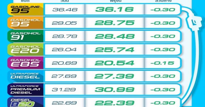 ปตท.-บางจากฯ ลดราคาน้ำมันทุกชนิด 30 สต./ลิตร ยกเว้น E85 ลด 15 สต./ลิตร มีผล 29 พ.ค.