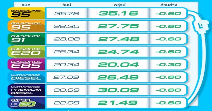 ปตท.-บางจากฯ ปรับลดราคาขายปลีกน้ำมันทุกชนิด 60 สต./ลิตร เว้น E85 ลดลง 30 สต./ลิตร มีผล 5 มิ.ย.62