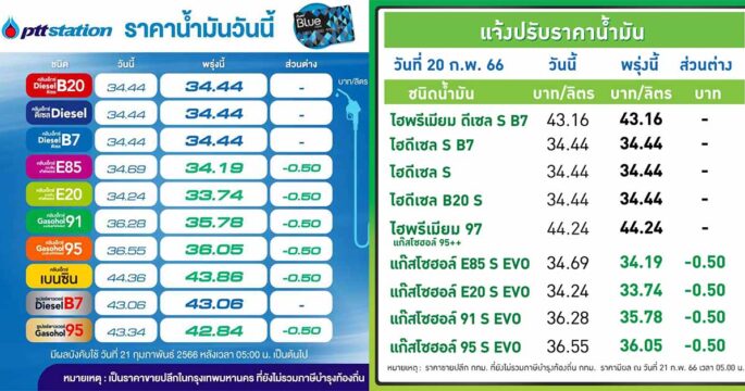 เฮ! พรุ่งนี้ (21 ก.พ.66) ผู้ค้าแจ้งปรับลดราคาน้ำมันกลุ่มเบนซินและแก๊สโซฮอล์ทุกชนิด ขยับลง 0.50 บาท/ลิตร ส่วนกลุ่มดีเซลคงเดิม