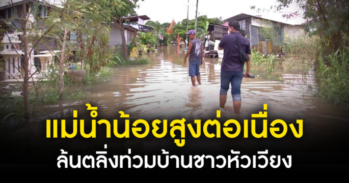 เขื่อนเจ้าพระยาระบายน้ำท้ายเขื่อนต่อเนื่อง ชาวบ้านหัวเวียง ริมแม่น้ำน้อย อ.เสนา จ.พระนครศรีอยุธยา ทยอยขนข้าวของขึ้นที่สูง เคลื่อนย้ายรถยนต์-รถจักรยานยนต์ไปจอดไว้บนสะพานสูงหนีน้ำท่วม ถนนหมู่บ้านน้ำท่วม 30-50 ซม. การสัญจรเริ่มลำบาก ชาวบ้านวอนหน่วยงานที่เกี่ยวข้องช่วยลดการระบายน้ำ