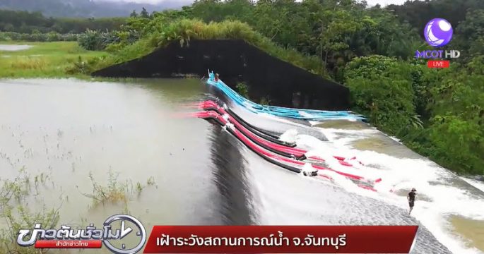 น้ำล้นสปิลเวย์ หลากท่วมพื้นที่การเกษตร ใน อ.ขลุง จ.จันทบุรี และถนนถูกน้ำกัดเซาะ ชาวบ้านช่วยกันขุดดินทำคันนบเปิดทางระบายน้ำ