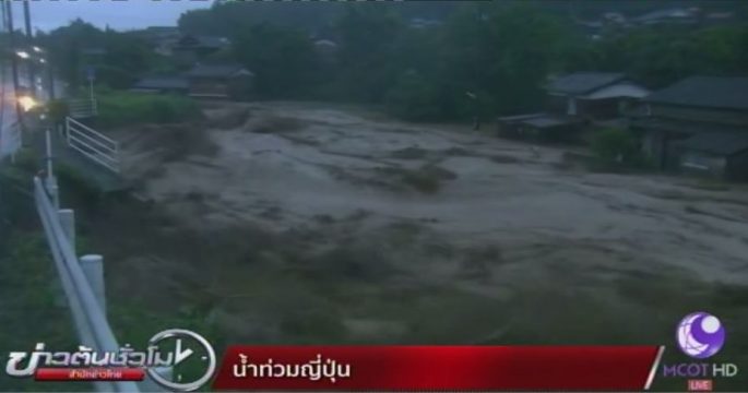 สถานการณ์น้ำท่วมทางตอนใต้ของญี่ปุ่น มีผู้สูญหายอย่างน้อย 15 คน ความรุนแรงของกระแสน้ำสร้างความเสียหายต่อบ้านเรือนและถนนหลายสาย