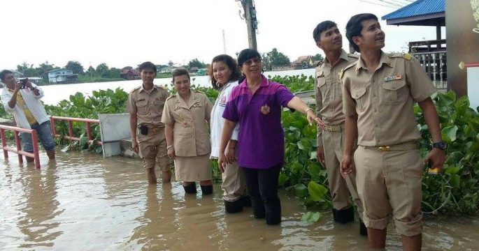 ปทุมธานีเร่งช่วยเหลือชุมชนริมฝั่งแม่น้ำเจ้าพระยาเริ่มถูกน้ำท่วมแล้วใน อ.สามโคก บางพื้นที่อยู่นอกแนวกั้นน้ำ เผยส่วนใหญ่รับมือไว้ก่อนขนย้ายสิ่งของขึ้นที่สูง