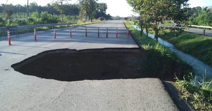 พายุฝนตกกระหน่ำ ดินอุ้มน้ำไม่ไหว เขื่อนคอนกรีตในลำคลองสาขาของแม่น้ำยม พังถล่ม บ้านเรือนประชาชนกว่า 40 หลังคา ทรุดตัวและเกิดรอยร้าว