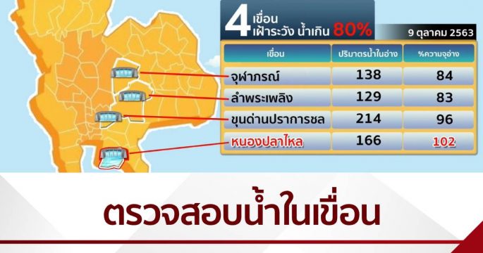 ตรวจสอบสถานการณ์น้ำในเขื่อนล่าสุด พบ 4 แห่งที่มีน้ำในอ่างเกินกว่า 80% ของความจุ โดยเฉพาะเขื่อนขุนด่านปราการชล จ.นครนายก ที่พบน้ำเพิ่มสูงขึ้นมาอยู่ที่ 96% ด้านกรมอุตุฯ ออกประกาศ พายุระดับ 1 บริเวณภาคใต้ตอนบน ฉบับสุดท้าย