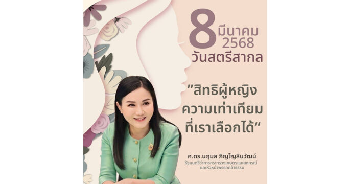 “นฤมล” เชื่อ พลังผู้หญิงสร้างความเปลี่ยนแปลงได้ เผยกระทรวงเกษตรฯ พร้อมส่งเสริมบทบาทสตรีในภาคเกษตร มุ่งพัฒนาศักยภาพให้เข้มแข็ง พึ่งพาตัวเองได้อย่างยั่งยืน