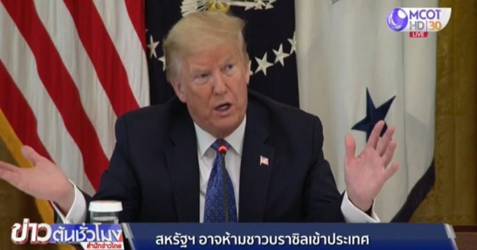 สหรัฐอาจห้ามประชาชนจากบราซิลเดินทางเข้าสหรัฐ เนื่องจากการแพร่ระบาดของเชื้อโควิด-19 ในบราซิลกำลังวิกฤติ มีผู้ติดเชื้อและเสียชีวิตเป็นจำนวนมาก