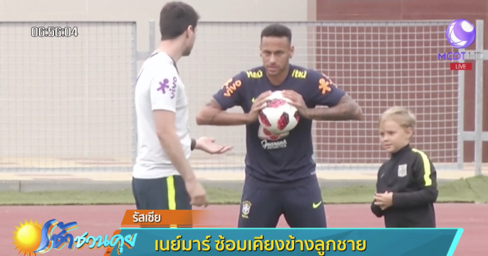 เนย์มาร์ ซุปเปอร์สตาร์ของทีมแซมบ้า บราซิล ได้ลงฝึกซ้อมเคียงข้างลูกชาย ก่อนพบ เบลเยี่ยม ในรอบ 8 ทีมสุดท้าย ฟุตบอลโลก 2018