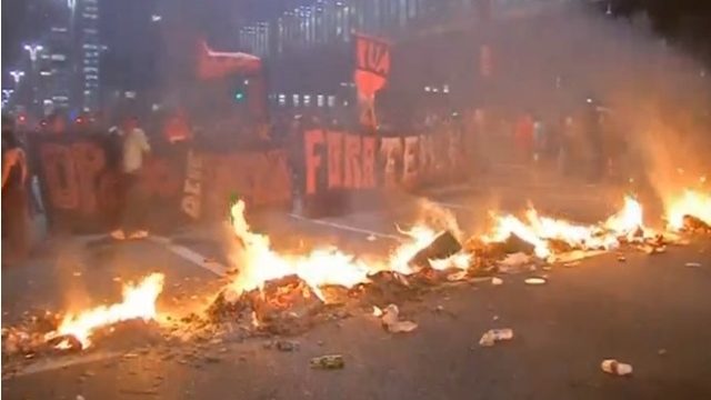 เจ้าหน้าที่ตำรวจของบราซิลยิงแก๊สน้ำตาสลายกลุ่มผู้ชุมนุมประท้วงการถอดถอนประธานาธิบดีดิลมา รุสเซฟฟ์ ออกจากตำแหน่ง บนถนนในนครเซาเปาโล