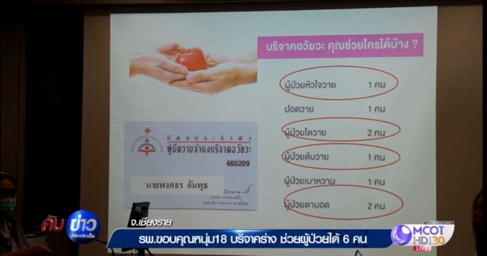 หัวใจน่ากราบ! รพ.เชียงรายประชานุเคราะห์ ขอบคุณหนุ่มวัย 18 บริจาคอวัยวะ ช่วยผู้ป่วยได้ 6 คน พ่อแม่ตกใจตอนแรกไม่เห็นด้วย สุดท้ายร่วมอนุโมทนาบุญกับลูกผู้ล่วงลับ