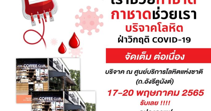 ศูนย์บริการโลหิตแห่งชาติ สภากาชาดไทย เชิญชวนประชาชนทั่วไปที่มีสุขภาพดี ร่วมเป็นส่วนหนึ่งของการให้ด้วยการบริจาคโลหิต ในโครงการ “เราช่วยกาชาด กาชาดช่วยเรา” ระหว่างวันที่ 17-20 พฤษภาคม 2565 ณ ศูนย์บริการโลหิตแห่งชาติ