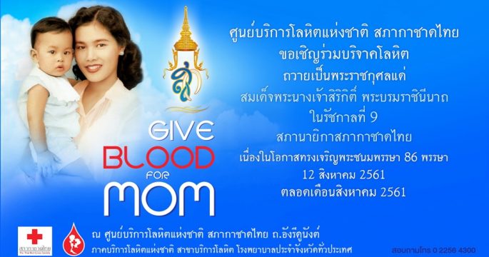 เนื่องในวันแม่ 12 ส.ค.เปิดรับบริจาคโลหิต สเต็มเซลล์ อวัยวะและดวงตา ตั้งแต่เวลา 08.00-16.00 น.ณ ศูนย์บริการโลหิตแห่งชาติ ถนนอังรีดูนังต์