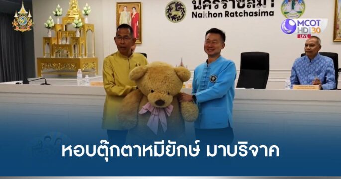 ผู้ว่าฯ โคราช หอบตุ๊กตาหมียักษ์ มาบริจาค