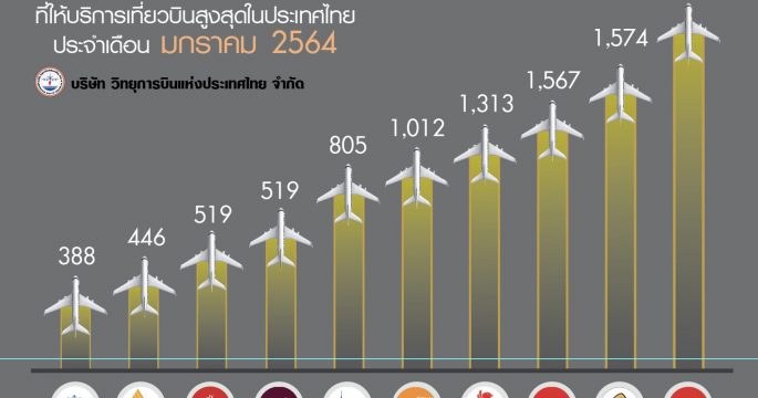 กรุงเทพฯ 17 ก.พ.-บริษัทวิทยุการบินแห่งประเทศไทยระบุโควิด-19 ระบาดใหม่ ทำเที่ยวบิน ม.ค.64 ลดลงถึงร้อยละ 40 รวมเที่ยงบินให้บริการจราจรทางอากาศ 23,536 เที่ยวบิน