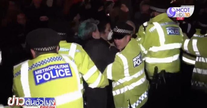 ตำรวจอังกฤษปะทะกับผู้ประท้วงต่อต้านนายกรัฐมนตรีบอริส จอห์นสัน ใจกลางกรุงลอนดอน หลังจากพรรคอนุรักษ์นิยมชนะการเลือกตั้งไปด้วยคะแนนเสียงถล่มทลาย