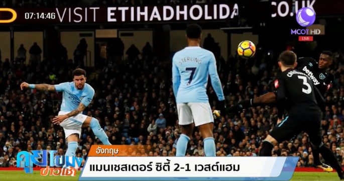 แมนเชสเตอร์ ซิตี้ ยังคงครองจ่าฝูงต่อไป หลังเปิดบ้านเฉือนชนะ เวสต์แฮม ยูไนเต็ด 2-1 ศึกฟุตบอลพรีเมียร์ลีก ของอังกฤษ