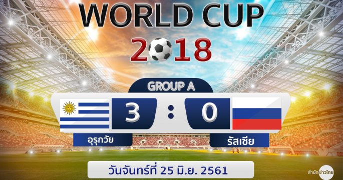 หลุยซ์ ซัวเรซ กับ เอดินสัน คาวานี่ ยิงคนละ 1 ประตูช่วยให้อุรุกวัย ถล่มเอาชนะ รัสเซีย คว้าแชมป์กลุ่ม เอ ในฟุตบอลโลก 2018
