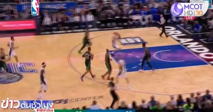 บาสเกตบอลเอ็นบีเอ สหรัฐ สายตะวันออก ออร์แลนโด แมจิก เปิดแอมเวย์ เซ็นเตอร์ พบกับ บอสตัน เซลติกส์ เกมนี้ออลันโดเฉือนเอาชนะไปได้ 105-103 คะแนน