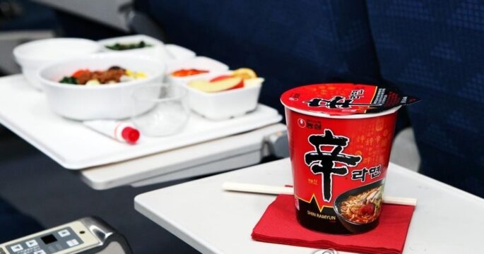 สายการบินโคเรียน แอร์ ของเกาหลีใต้จะยกเลิกบริการบะหมี่กึ่งสำเร็จรูปในถ้วย หรือ คัพนูเดิ้ล ที่จะเป็นต้องใช้น้ำเดือดในการปรุง ให้กับผู้โดยสารชั้นประหยัดในเที่ยวบินเส้นทางระยะไกล