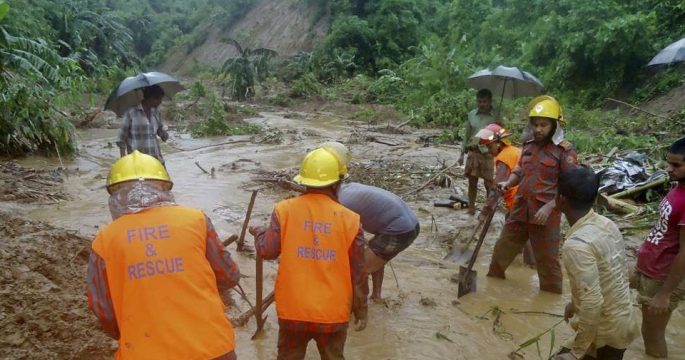เจ้าหน้าที่กู้ภัยบังกลาเทศ เร่งช่วยเหลือผู้ประสบภัยดินถล่มในพื้นที่ห่างไกล ทางตะวันออกเฉียงใต้ของประเทศ หลังจากเมื่อวันจันทร์ที่ผ่านมาเกิดฝนตกหนักและดินถล่ม