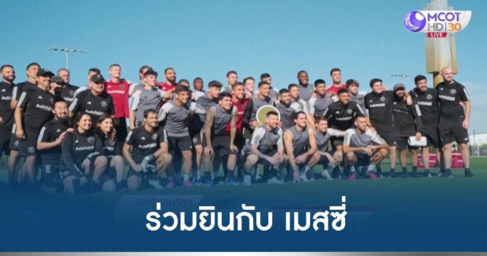 นักเตะอินเตอร์ ไมอามี่ ร่วมแสดงความยินดีกับ ลิโอเนล เมสซี่ ที่ได้รับรางวัลบัลลงดอร์สมัยที่ 8 หลังจากกลับมาร่วมซ้อมกับเพื่อนร่วมทีมที่สหรัฐฯ