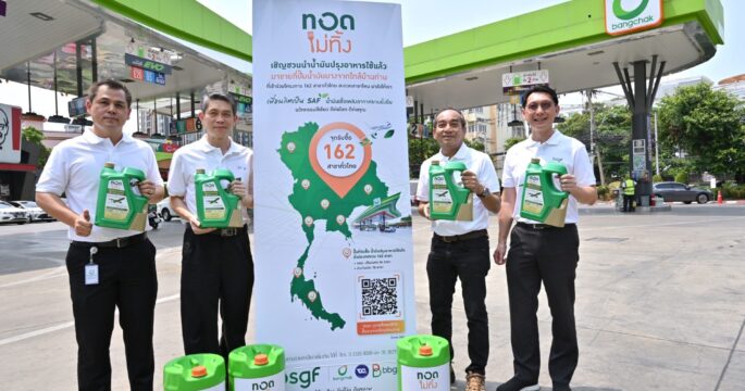 กรุงเทพฯ 4 ธ.ค.- กลุ่มบริษัทบางจากเดินหน้าความร่วมมือน้ำมันพืชเก่าแลกน้ำมันพืชใหม่ ภายใต้โครงการ “ทอดไม่ทิ้ง” บริหารจัดการน้ำมันใช้แล้วเพื่อมาผลิต SAF