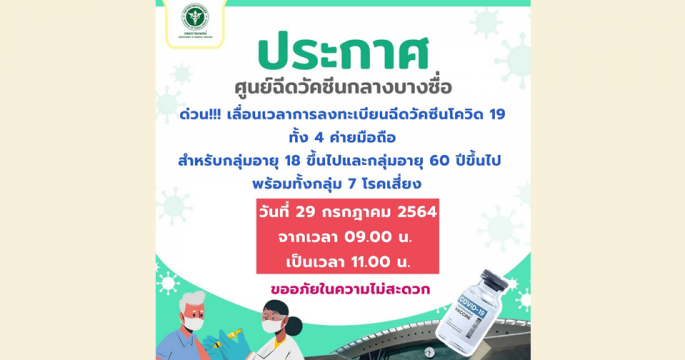 กรุงเทพฯ 29 ก.ค.-วันนี้ 3 ค่ายโทรศัพท์มือถือ และ บมจ.โทรคมนาคมแห่งชาติ กลับมาเปิดลงทะเบียนจองคิวฉีดวัคซีนโควิด ที่ศูนย์ฉีดวัคซีนกลางบางซื่ออีกครั้ง เพื่อเข้ารับการฉีดวัคซีนระหว่างวันที่ 1-31ส.ค.นี้ ล่าสุดทางกรมการแพทย์ ได้มีการเลื่อนเวลาเริ่มเปิดลงทะเบียนจาก 09.00น. มาเป็นเวลา 11.00น. โดยผู้ลงทะเบียนต้องเป็นบุคคลที่ยังไม่เคยได้รับวัคซีนโควิด เข็มที่ 1 มาก่อน แบ่งเกณฑ์ตามอายุ ตั้งแต่ 18 ปีขึ้นไป ,ผู้สูงอายุ 60 ปีขึ้นไป/ ผู้ป่วย 7 กลุ่มโรคเรื้อรัง (ไม่รวมผู้ติดตาม) เฉพาะกลุ่ม 7 โรคเรื้อรัง โรคทางเดินหายใจเรื้อรัง โรคหัวใจและหลอดเลือด โรคไตวายเรื้อรัง โรคหลอดเลือดสมอง โรคอ้วน โรคมะเร็ง โรคเบาหวาน ต้องมีการเช็คกับกรมการแพทย์ประกอบด้วย และกรณีที่ลงทะเบียนไม่ผ่าน ต้องเช็คกับโรงพยาบาลที่ทำการรักษาเพื่อส่งข้อมูลเข้าไปตรงส่วนกลาง ทั้งนี้ ผู้ที่มีอายุ18ปีขึ้นไป มีโควต้าให้วันละ 10,000 โดส ส่วนผู้มีอายุ 60 ปีขึ้นไปและผู้ป่วยกลุ่ม 7 โรคเรื้อรัง มีโควต้าให้วันละ […]