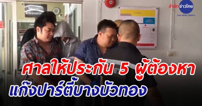 ศาลให้ประกัน 5 ผู้ต้องหาแก๊งปาร์ตี้บ้านบางบัวทอง ตีหลักทรัพย์เป็นเงินสดคนละ 150,000 บาท