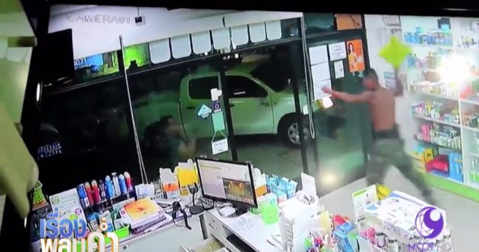 หนุ่มคลั่งอาละวาดพังร้านขายยาและร้านสะดวกซื้อ ย่านบางบัวทอง จ.นนทบุรี ข้าวของในร้านเสียหาย รวมถึงรถเก๋งที่จอดซื้อของอยู่หน้าร้าน ก่อนตำรวจจะจับตัวไว้ได้และส่งโรงพยาบาล