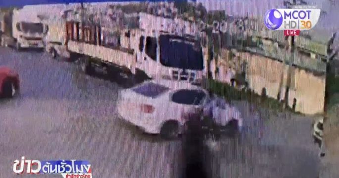 ภาพกล้องวงจรปิดเผยนาทีจักรยานยนต์ชนรถยนต์จอดรอข้ามถนนเพื่อไปฝั่งตรงข้ามเต็มแรงบาดเจ็บ 2 คน