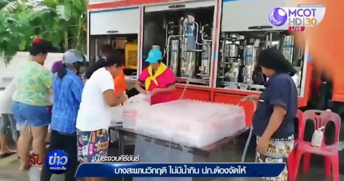 น้ำป่าซัดฝายชะลอน้ำ บ้านทองมงคล อ.บางสะพาน จ.ประจวบคีรีขันธ์ พังเสียหาย ชาวบ้านไม่มีน้ำอุปโภคและบริโภค เจ้าหน้าที่จัดรถผลิตน้ำดื่ม 2 คัน ให้บริการประชาชน